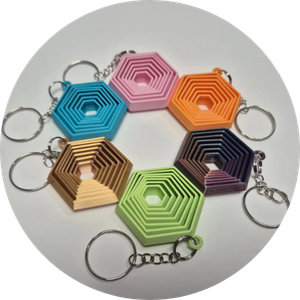 Chaveiros feitos em impressão 3D com designs únicos e resistentes.