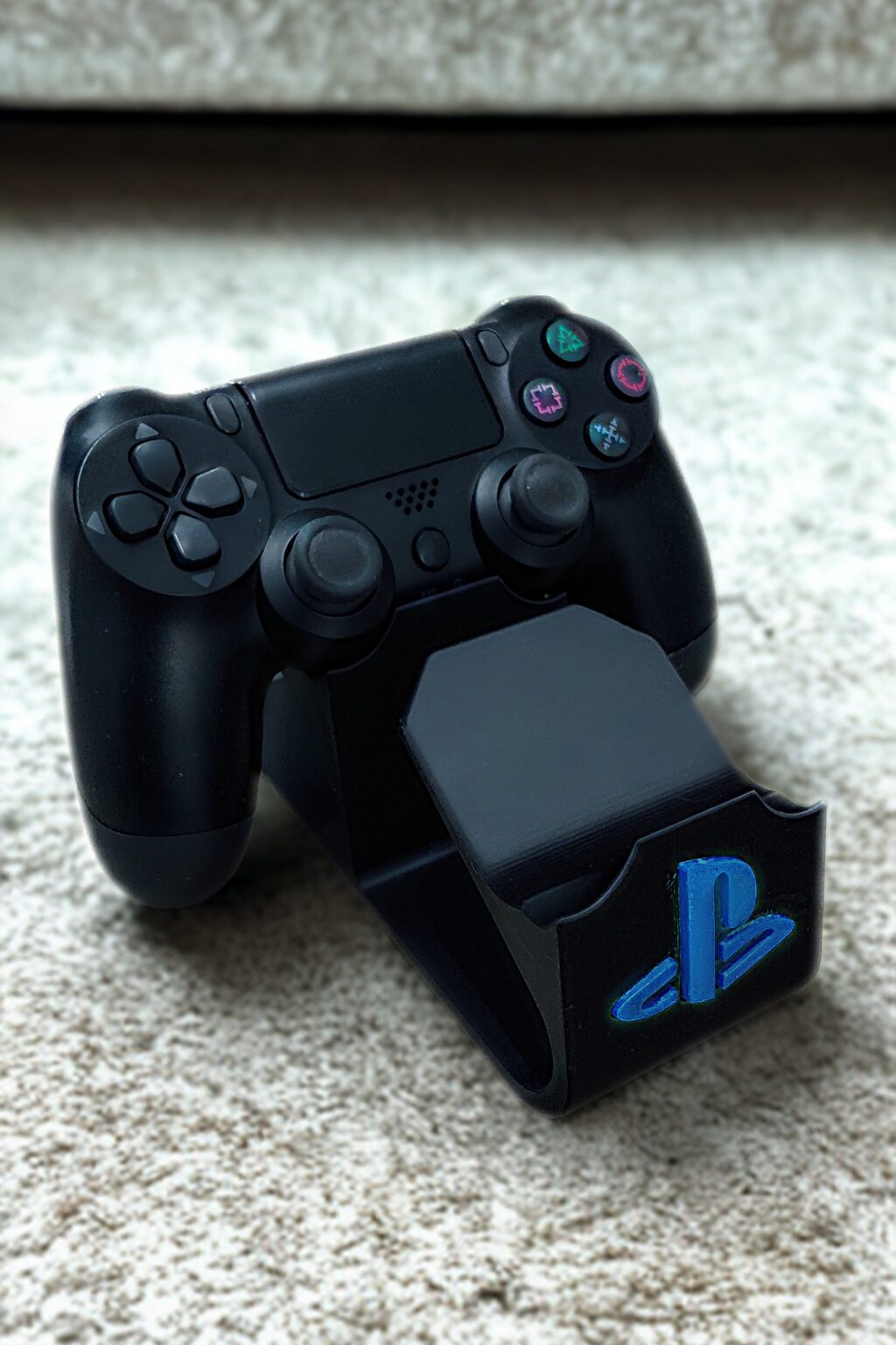 Suporte para Controle PS4 feito em impressão 3D, com encaixe perfeito e design moderno. Ideal para organizar, proteger e valorizar seu setup gamer.
